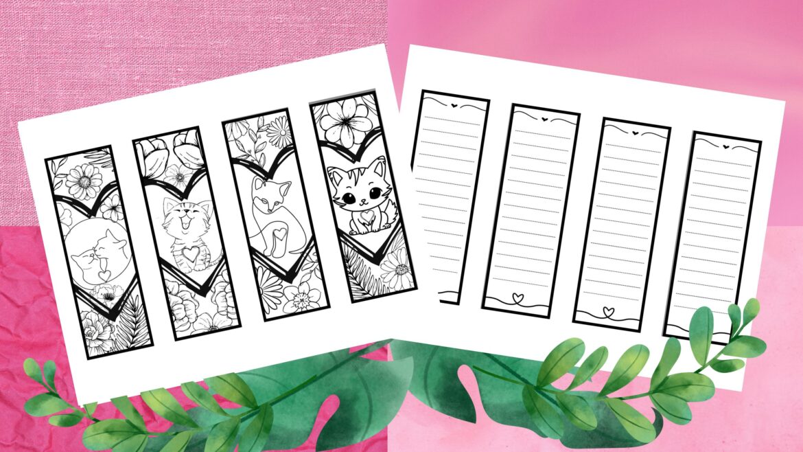 1 Sheet of 4 Printable Bookmarks around 2 x 6 inches each