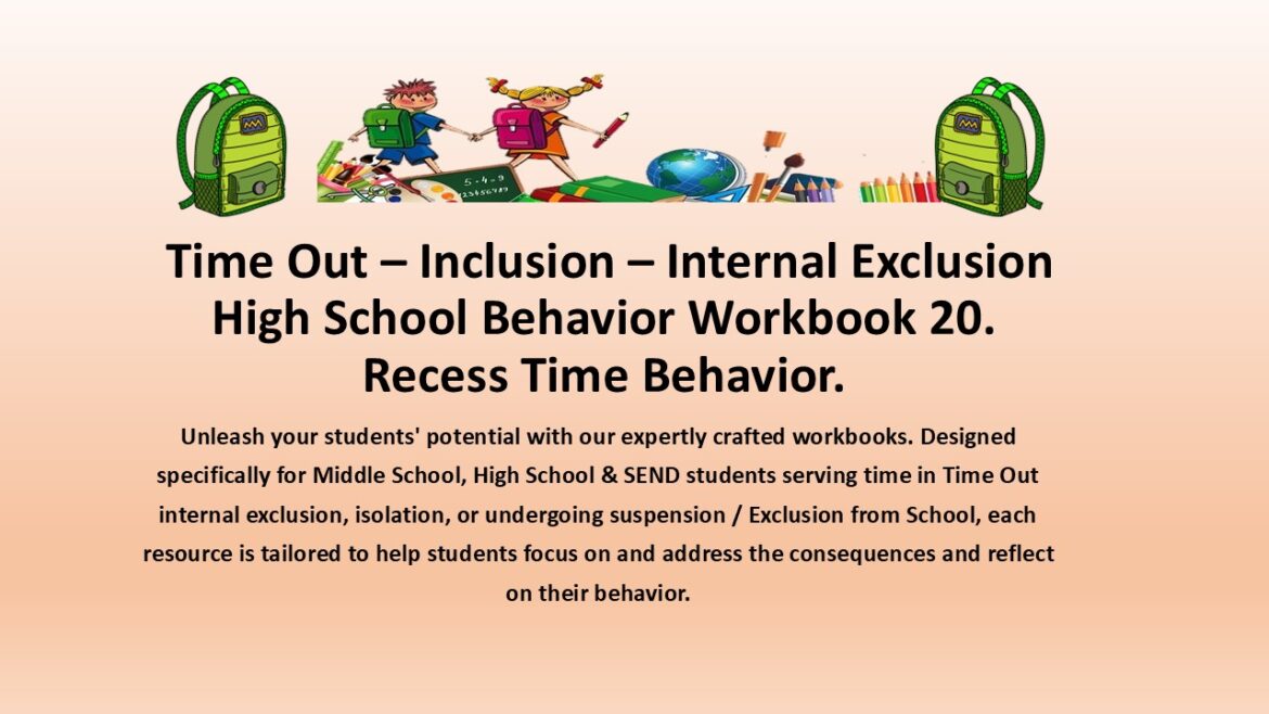 This High School Internal Exclusion Workbook is designed to help students reflect on their behavior and understand the impact of their actions during break and lunchtime. Through engaging lessons and activities, students will explore how their choices affect themselves and others, develop strategies for positive interactions, and learn how to create a respectful and inclusive school environment.
