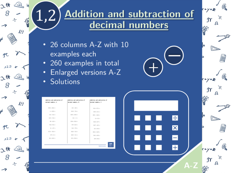 Addition and subtraction of decimal numbers | math | 26 columns