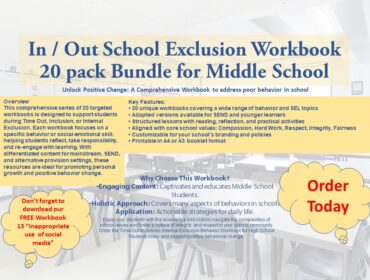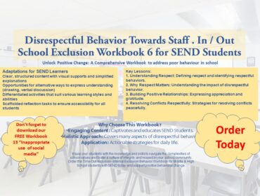 With a background spanning both the high school and prison environments, I possess a wealth of experience in managing challenging behaviour and overseeing exclusion settings. My skills in creating structured, supportive environments and fostering positive change are complemented by my ability to de-escalate conflict and maintain a calm atmosphere. Drawing from this experience, I have developed a series of behaviour workbooks specifically tailored for KS2, KS3, KS4, and SEND pupils. These resources cover a wide range of behaviours and focus on addressing their root causes, promoting self-reflection, and encouraging positive change. I am deeply committed to promoting positive behaviour and academic progress, even within challenging contexts. My approach is rooted in building strong relationships and understanding the underlying causes of behaviour. I am confident in my ability to contribute to a safe and productive school environment, where every student feels supported and empowered.