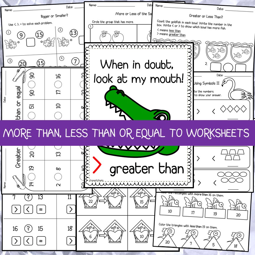 These worksheets will help your student know: more than, less than & equal to problems while they go through a smooth transition from easy to difficult. Some of the activities in this pack will require scissors and glue.